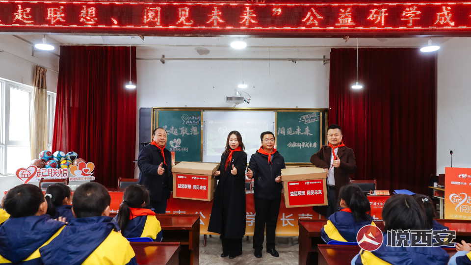 2月13日,雖已立春,一場雨的到來卻讓西安的溫度驟降,而在距離西安一個小時車程的大山中,柳絮般的大雪正飄落在藍(lán)田縣灞源鎮(zhèn)中心學(xué)校的校園中。這里的師生們正在緊張而有序中迎來新的一學(xué)期開學(xué)。 不同以往,這一天,由聯(lián)想集團聯(lián)合華商報主辦的“益起聯(lián)想 閱見未來”公益研學(xué)成長營活動來到了學(xué)校,給這里的老師和同學(xué)們帶來了電腦、體育用品、電子琴等教具,以及西安博物院的研學(xué)課堂,鼓勵同學(xué)們努力學(xué)習(xí),同時幫助他們打開視野,增長知識和才干。 圖:捐贈儀式 藍(lán)田縣教育和科學(xué)技術(shù)局副局長李鵬偉、藍(lán)田縣教育和科學(xué)技術(shù)局財務(wù)科長李建波、聯(lián)想中國西北大區(qū)陜西大客戶業(yè)務(wù)總經(jīng)理孫宏昌、華商報社3C行業(yè)總監(jiān)崔莎、灞源鎮(zhèn)中心學(xué)校黨支部書記校長胡武剛、灞源鎮(zhèn)中心學(xué)校本部校長任小勇出席了本次捐贈儀式。