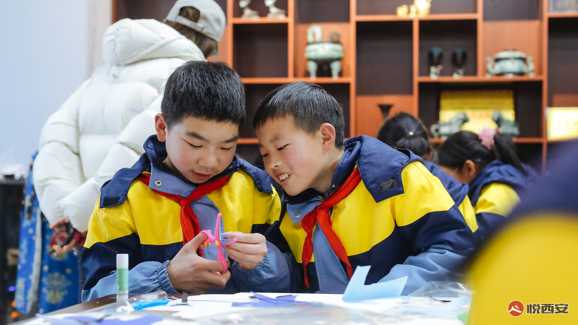 在“益起聯(lián)想 閱見未來”的另一節(jié)課堂,研學(xué)之旅來到了歷史氛圍濃厚的西安博物院,通過參觀博物院展館、體驗樂知學(xué)堂手工課程等環(huán)節(jié),豐富的實物資料和生動鮮活的教育形式,知識問答和DIY創(chuàng)作讓孩子們切身感受到了傳統(tǒng)文化的魅力。 在盧婷老師的帶領(lǐng)下,同學(xué)們參觀了薦福寺古建筑群園林景區(qū)、小雁塔、基本陳列、“花月醉雕鞍——大唐金鄉(xiāng)縣主展”等展廳,窺見藏品庫深處的奇珍異寶及曲折離奇的歷史故事,挖掘“鎏金走龍”、“三彩騰空馬”、“史君墓石槨”等“鎮(zhèn)館之寶”的前世今生,更沉浸到了“金鄉(xiāng)縣主墓”與唐人的日常生活中去。張同學(xué)告訴記者,“以后還要來這里參觀,胡人少年騎手的姿態(tài)已經(jīng)深入腦海了! 緊接著,跟隨“大唐女兒行,妝發(fā)服飾演變史”的一段網(wǎng)絡(luò)視頻,李晶洋老師身著圓領(lǐng)袍衫,頭戴幞頭,腳踩長靴現(xiàn)身于課堂之上,圍繞“來自唐朝的時尚手冊”開展主題小課堂,帶同學(xué)鉆研唐服時尚文化。“唐朝時期的服裝是中國古代漢服的其中一個體系,我們今天的重點是唐朝時期的漢服。其實大家總喜歡把唐制漢服簡寫為唐裝。這樣不準(zhǔn)確。唐裝的特點是立領(lǐng)盤扣,由滿族的馬褂演化而來。”李老師講道。 活動現(xiàn)場,孩子們還體驗了雕版印刷的復(fù)制手段,手拿紙、墨、雕版等工具,學(xué)生在自己動手制作過程中剖析印刷術(shù)工藝,從而體會特色文化帶來的深遠(yuǎn)影響。 圖:西安博物院副院長 王自力 “學(xué)習(xí)漢服文化、體驗雕版印刷術(shù),沉浸感受寶貴的歷史文化遺產(chǎn)。研學(xué)已發(fā)展成為素質(zhì)教育的新內(nèi)容和新方式,承擔(dān)起了新時代校外教育活動的使命!蔽靼膊┪镌焊痹洪L王自力表示,西安博物院重點打造的研學(xué)課堂目的在于提升青少年的知識技能、開闊眼界,培養(yǎng)獨立能力與創(chuàng)造精神,促使同學(xué)們形成正確的世界觀、人生觀、價值觀。